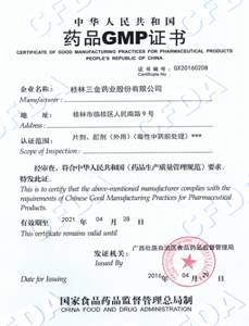 Sanjin Pharmaceutical has passed the GMP certifications of the country as well as Australia's drug supervision departments. It takes GMP as guidelines, scientific management as bases, modern science and technology as tools. Its quality control is throughout the entire process of production and operation starting from product design, research and development. It has established a good quality assurance system effective in operation.